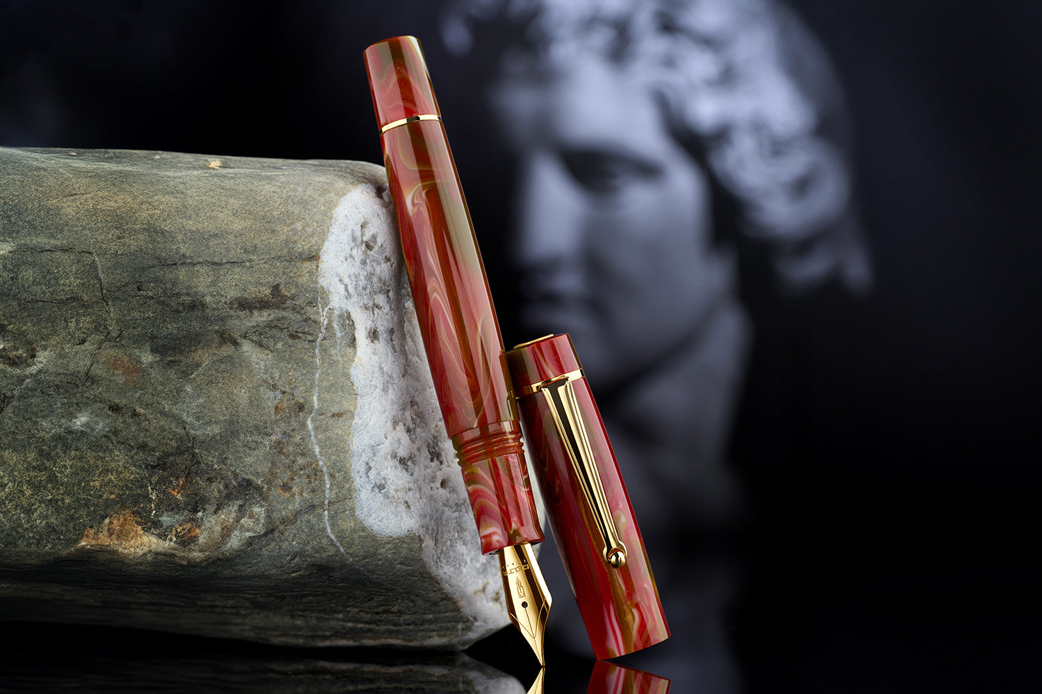 עט נובע תוצרת Delta, מותג היוקרה האיטלקי, מתוך המהדורה המיוחדת "Signs of Time" בהשראת האמנות הקלאסית. גוף העט עשוי שרף (resin) אדום ומעוטר בגימורים כסופים, וכולל ציפורן פלדת אל-חלד #6 מתוצרת JoWo הגרמנית, הזמינה גם בגרסת Flex המאפשרת גיוון בעובי הקו. העט פועל באמצעות מנגנון מילוי בוכנתי (piston-filler) לשימוש עם דיו בבקבוק. כל יחידה מיוצרת בעבודת יד באיטליה וממוספרת בנפרד, מה שהופך אותו לפריט אידיאלי לאספנים ולמעריכים של כלי כתיבה עם עיצוב ייחודי ומורשת אמנותית.