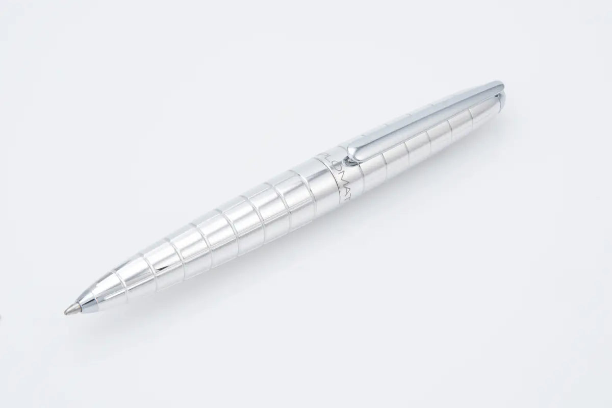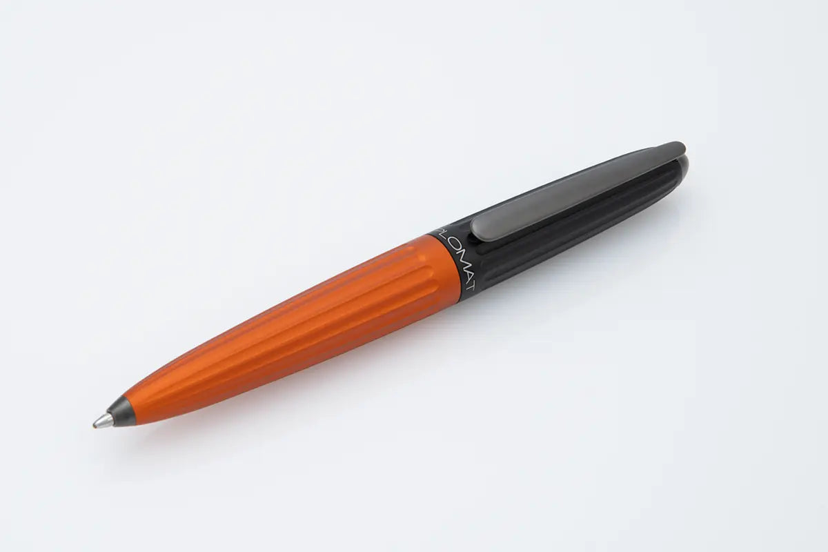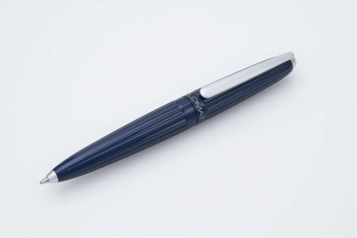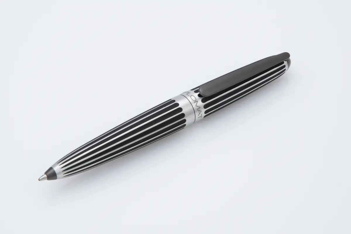 עט כדורי מסדרת Aero של המותג הגרמני Diplomat, המציג עיצוב ייחודי בהשראת ספינות הצפלין. גוף העט עשוי אלומיניום אנודייז בגימור מבריק.