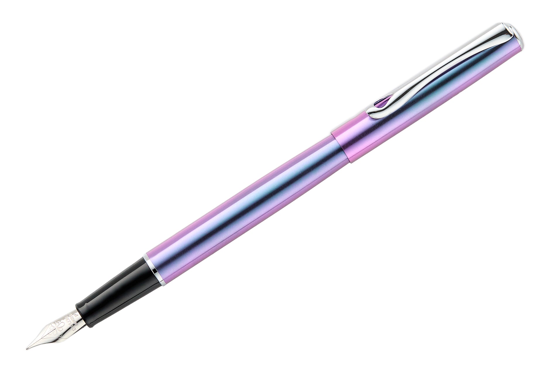 עט נובע מדגם Traveller של חברת Diplomat, המאופיין בעיצוב דק ואלגנטי. גוף העט עשוי מתכת בגימור לכה בגוון "Funky Petrol" כחול-סגול, עם עיטורי כרום מלוטשים. העט מצויד בציפורן JoWo #5 חלקה ועמידה, המיוצרת מפלדת אל-חלד. מערכת המילוי מתאימה למחסניות דיו סטנדרטיות או ממיר (שניהם כלולים), מה שהופך אותו לבחירה ורסטילית ונוחה לנסיעות ולשימוש יומיומי.