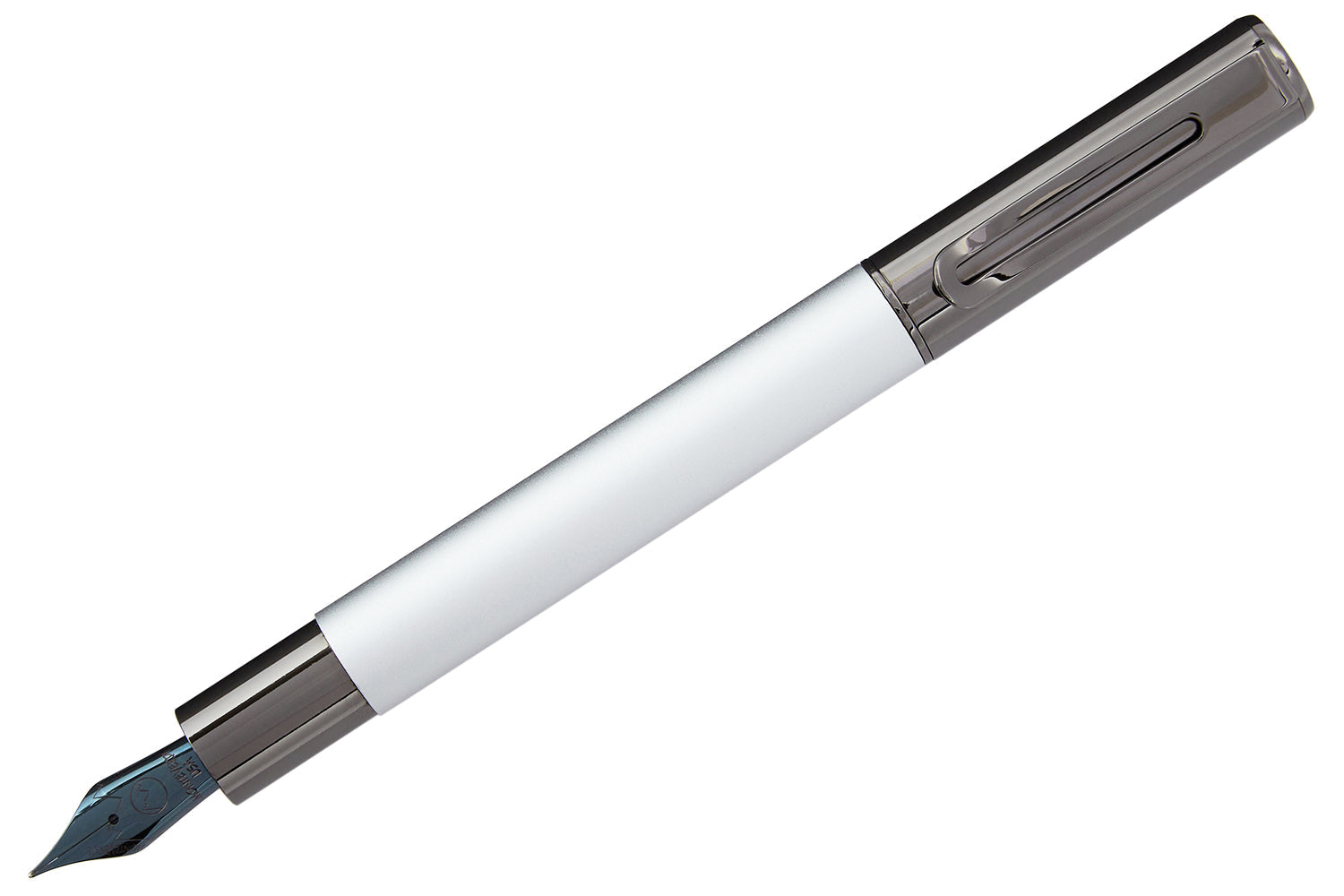 עט נובע Monteverde Ritma בצבע כסוף, בעל גוף אלומיניום בגימור מט ואלמנטים בצבע גונמטל. העט שואב השראה מהעיצוב המינימליסטי וכולל מכסה מגנטי ייחודי לסגירה ופתיחה נוחה. הוא מצויד בציפורן פלדה שחורה JoWo #6 תוצרת גרמניה, הזמינה במגוון רחב של מידות עובי. מבנה הפלדה והאלומיניום מעניק תחושה מאוזנת וכבדה, המתאימה לחובבי כתיבה המחפשים כלי כתיבה יציב ומרשים. העט פועל באמצעות ממיר או מחסניות דיו בתקן בינלאומי.