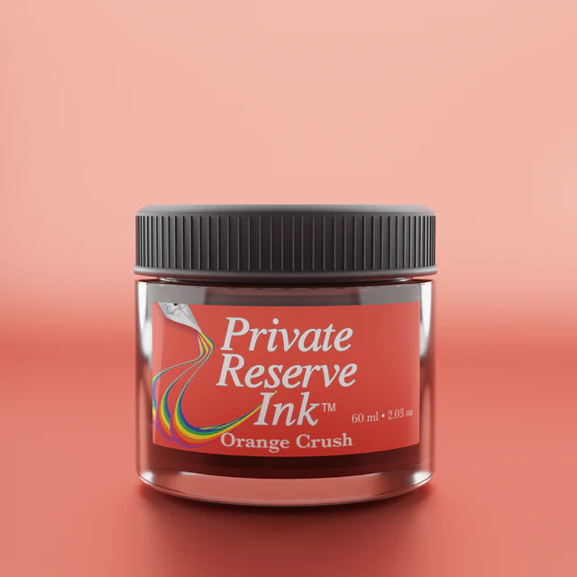Private Reserve Orange Crush is a vibrant, energetic orange that adds a burst of warmth and vitality to your writing. With its smooth flow and brilliant hues, this ink is perfect for creative projects and highlighting important notes. Its high saturation and reliable performance ensure that your writing stands out with a lively and dynamic color.
