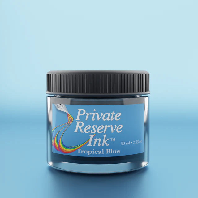 Private Reserve Tropical Blue captures the essence of clear, tropical waters with its bright, vivid hue. This ink's smooth flow and high saturation make it perfect for adding a splash of color to any writing or artwork. Its vibrant color and reliable performance make it an excellent choice for those seeking a refreshing and lively blue.